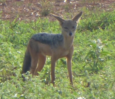 weggejaagd door blaffende jakhalzen, blackbacked jackal.