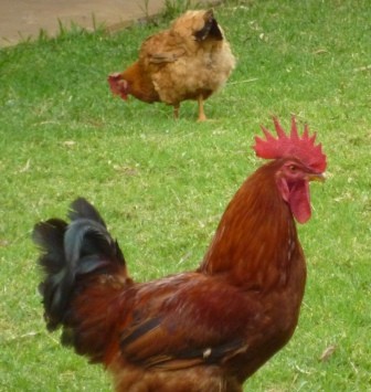 twee hanen. Die op de foto had de mooiste kam, de andere was de baas. Ze