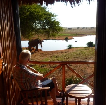 Genieten op het balkon. Van: gewoon kijken, naar b.v. een olifant die zich