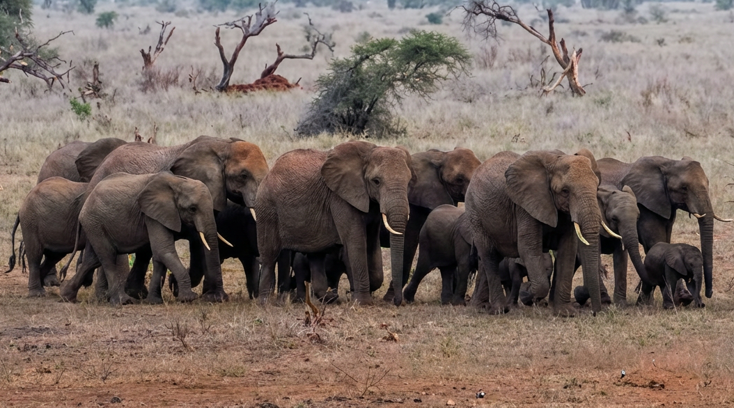olifanten en toen ineens een hele kudde: 24, met 3 baby's. We hebben er