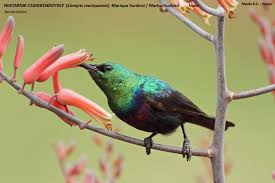 was een sunbird - soort kolibrie, foto internet - die er honing van kwam snoepen;