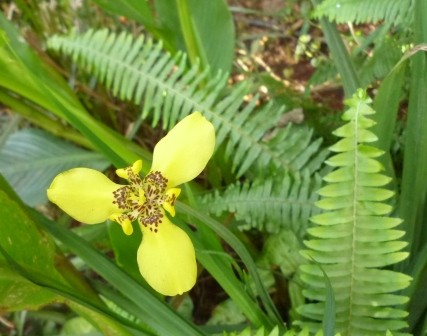 de gele is Trimezia martinicensis, de rode erboven w.s.