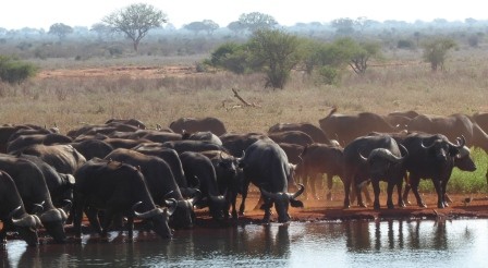 Daar zijn dan de buffels die komen drinken. Eerder