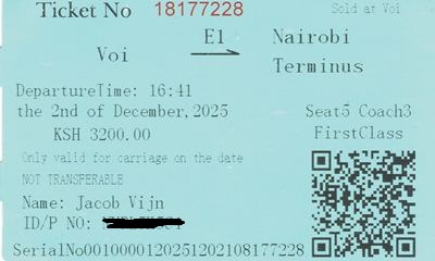 met de trein naar Voi, 3 1/2 uur. Vanuit Wildebeest Eco om 13