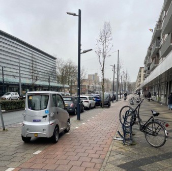 het midden een trambaan. Ik vond de straat verrassend gezellig: winkels