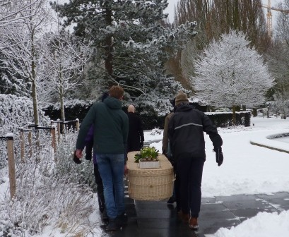 voor morgen, als Trees begraven gaat worden, wordt er 6 of 7 cm sneeuw