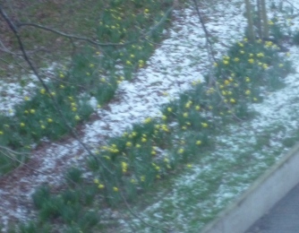 Een tijdje later is de meeste sneeuw weg en zie je weer de narcissen